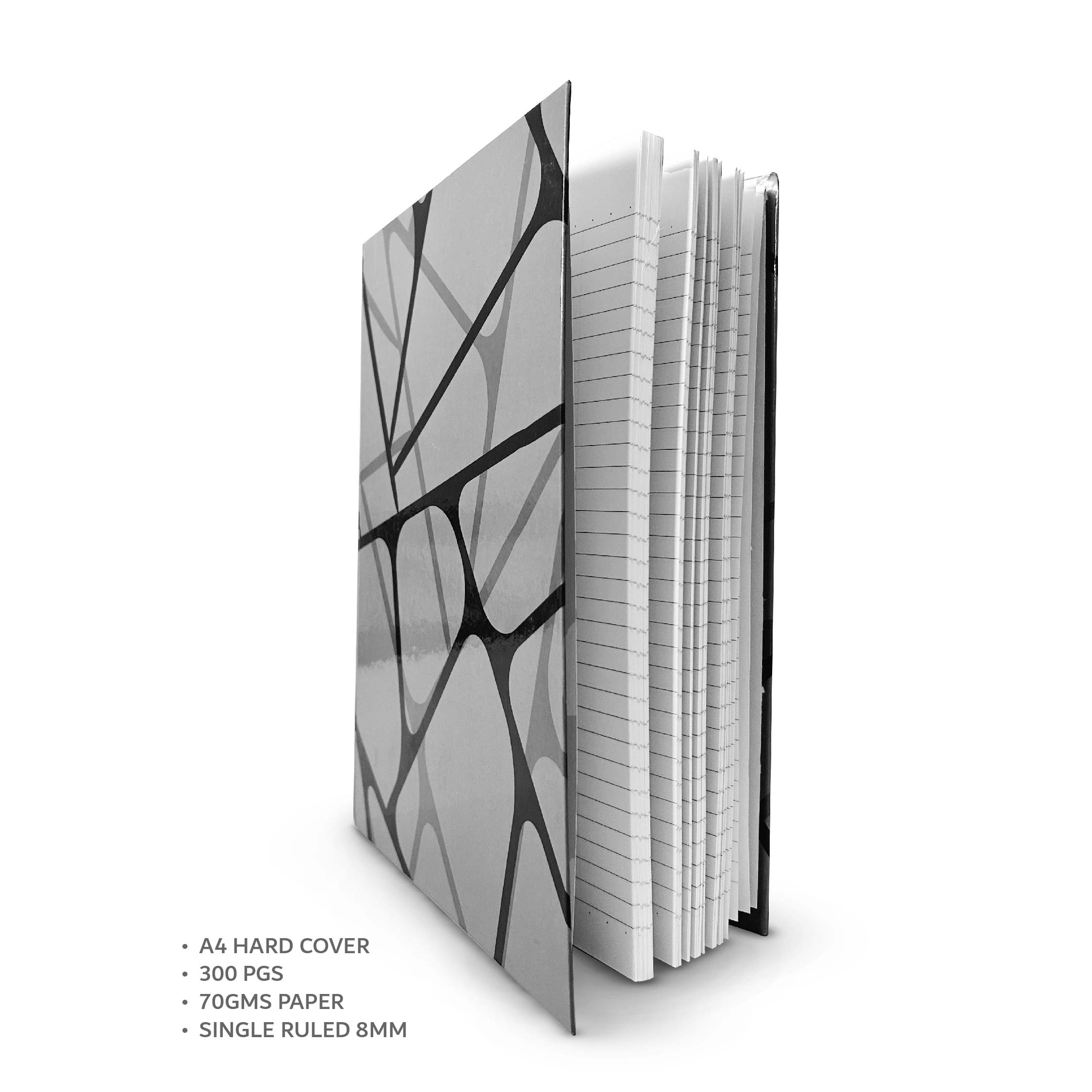 Measuring 30.7 cm x 21.7 cm x 2.5 cm, it offers generous space for your ideas, sketches, and detailed notes. The sturdy hardcover protects your content while giving a professional and polished look. With 300 single-ruled pages (8mm spacing) and smooth 70gsm paper, your writing stays neat, consistent, and bleed-free.