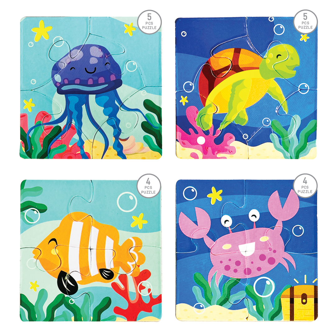 Pieces per puzzle: 4 (2 puzzles) & 5 (2 puzzles)