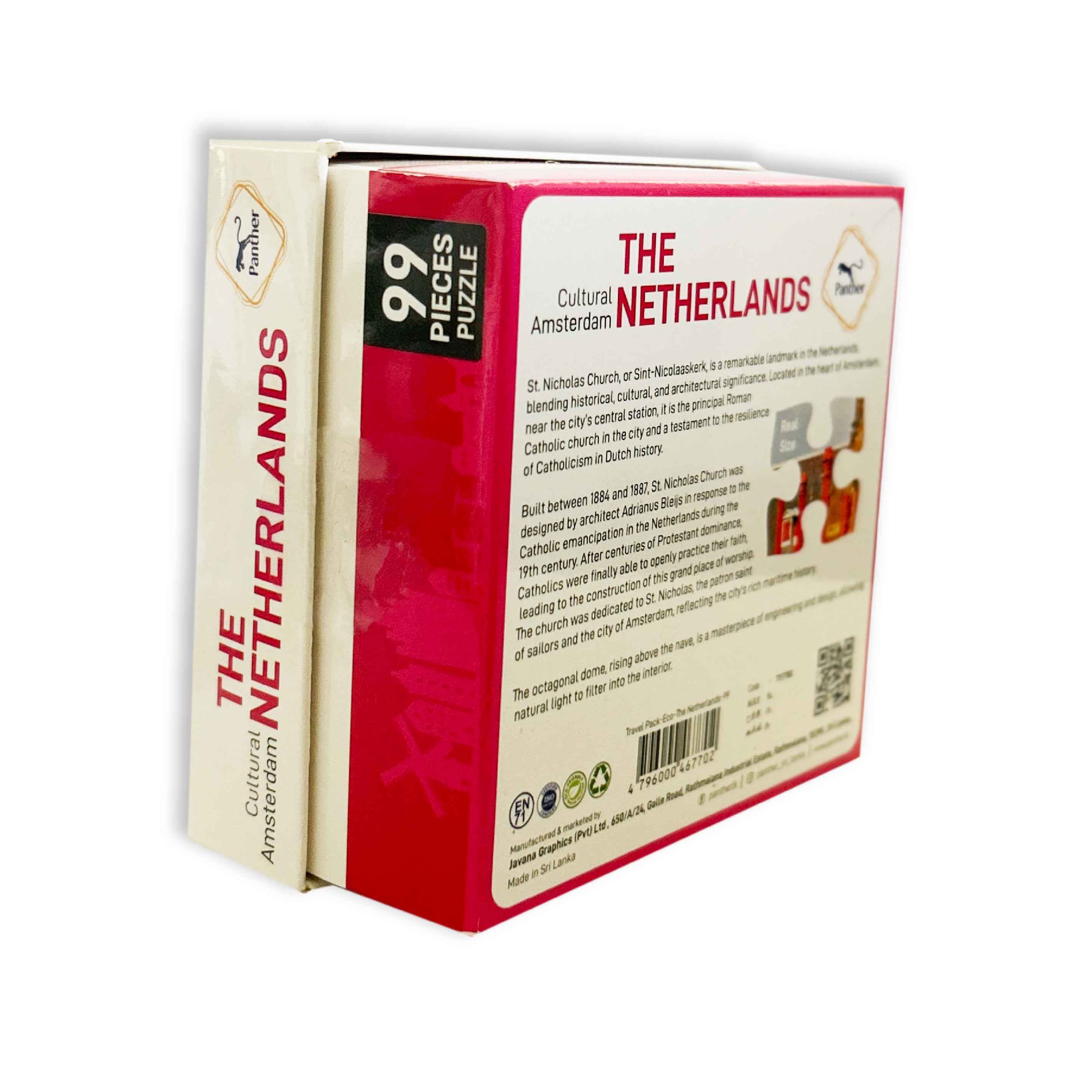 Introducing the latest Eco Range addition to Panther’s Travel Pack series, a beautiful new set of now featuring The Netherlands! Bring the charm of Amsterdam into your home with the Travel Pack – Eco – The Netherlands – 99 Pieces Puzzle. Depicting one of the city’s most iconic landmarks, this puzzle celebrates Dutch culture and architectural beauty.