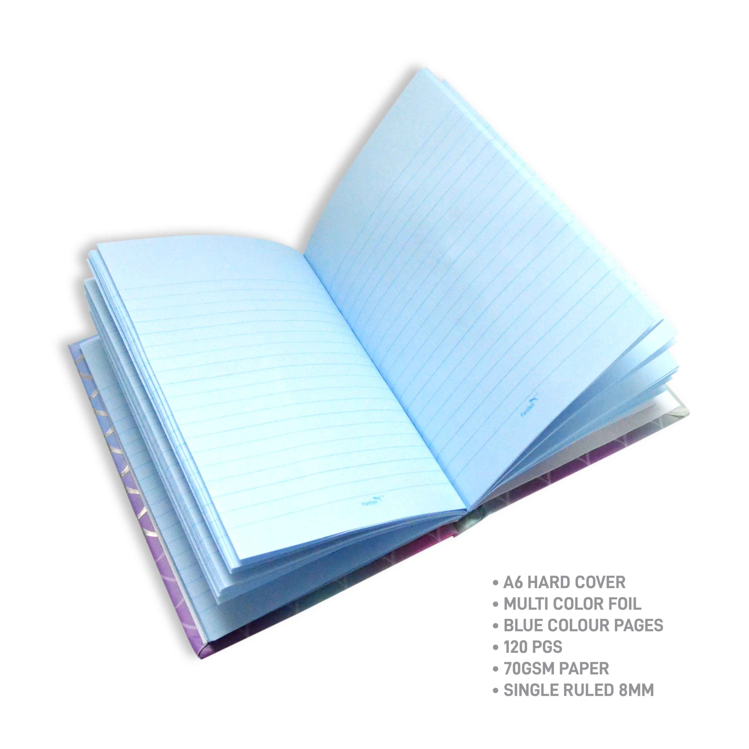 Within its sleek hardcover lies a treasure trove of possibilities, comprising 120 pages of premium quality paper. Each page is delicately crafted from 70gsm blue-colored paper, providing a visually appealing backdrop for your thoughts to unfold. The ruling is set at a comfortable 8mm, offering ample space for neat and organized writing, whether you’re taking notes during meetings, journaling your daily reflections, or sketching your next masterpiece.
