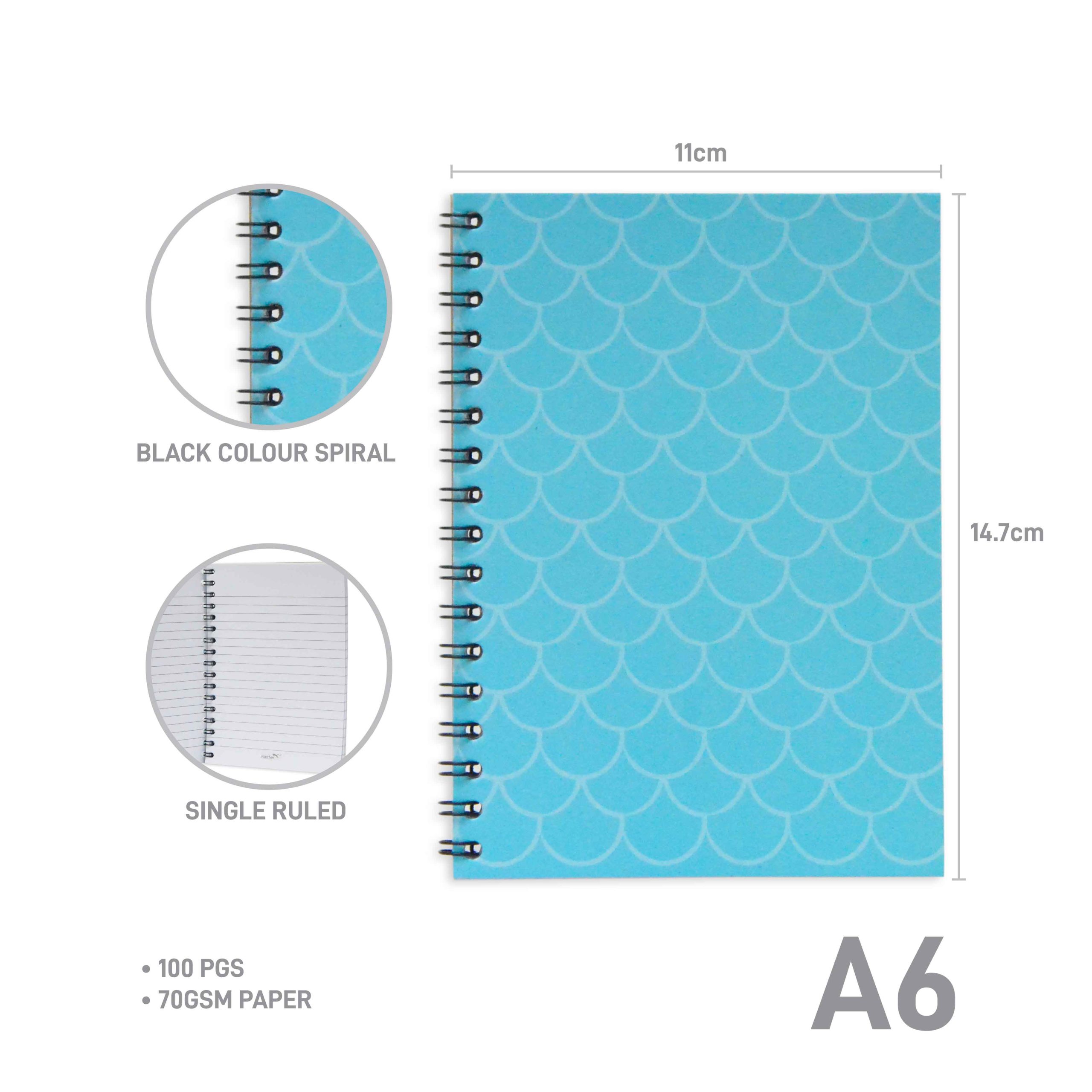 As you flip open the cover, you’ll be greeted by 100 pages of premium quality single-ruled paper, each one a blank canvas awaiting your imagination to breathe life into it. Crafted from 70gsm paper, these pages offer a smooth writing experience, allowing your pen to glide effortlessly as you pour your thoughts, dreams, and aspirations onto the page. Whether you’re scribbling down notes, sketching out ideas, or journaling your daily adventures, you’ll find that the Mermaid A6 Spiral Notebook provides the perfect space for your creative expression to flourish.