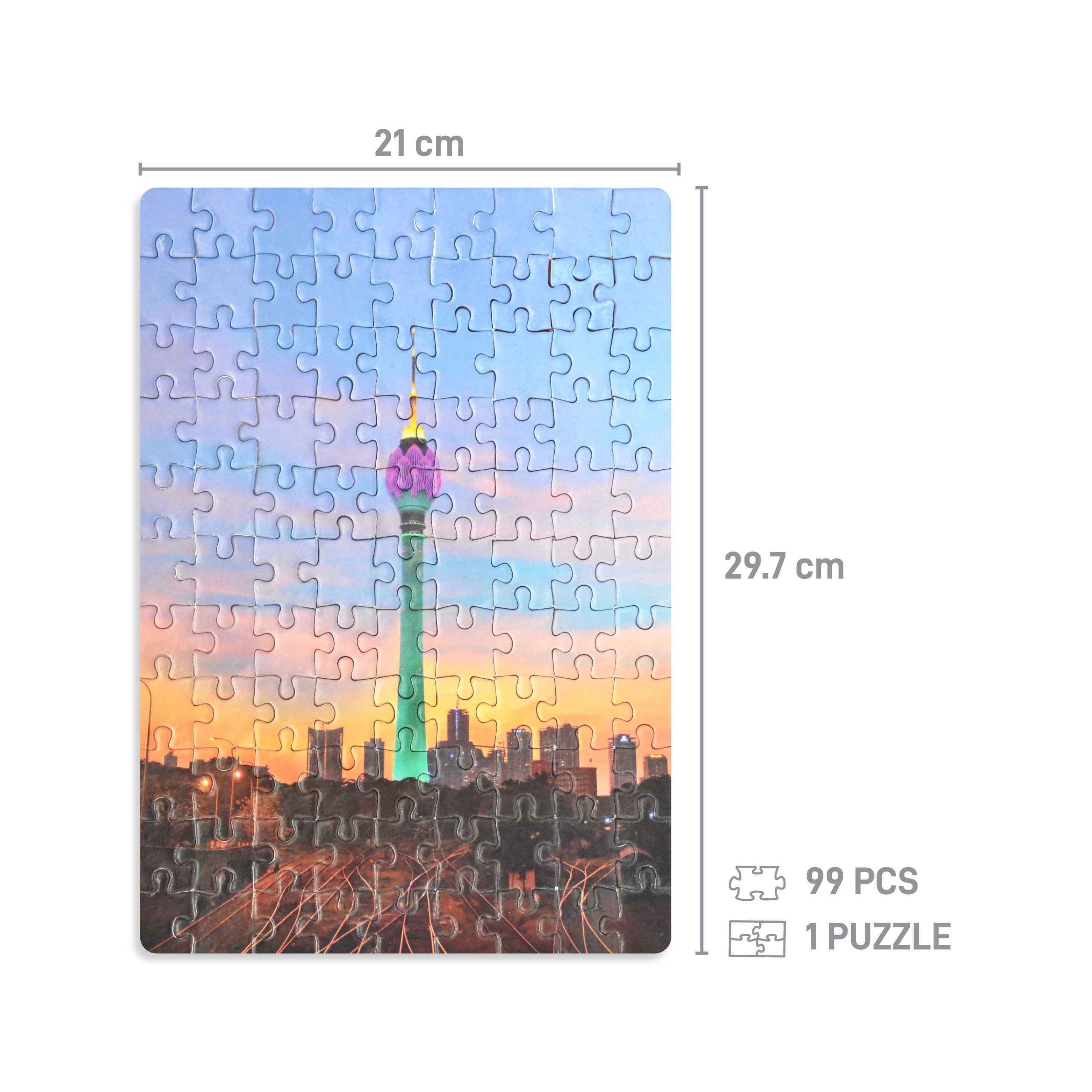 At a size of 21cm x 29.7cm, each puzzle captures the graceful elegance of the Lotus Tower in breathtaking detail. From its towering height to its intricate architectural features, every aspect of this iconic landmark is brought to life, offering a glimpse into Sri Lanka’s rich cultural heritage.