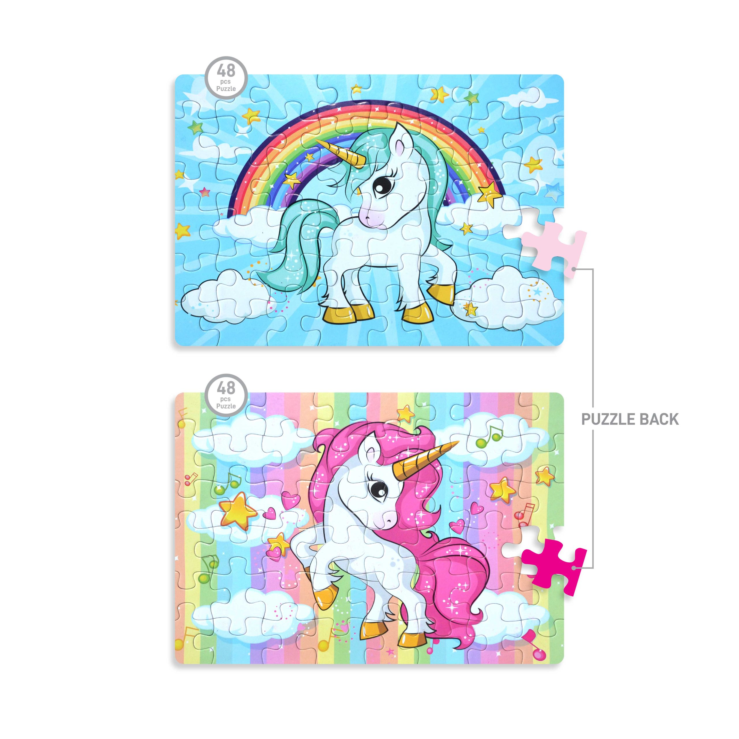 Measuring at a size of 26.5cm x 18.5cm, the completed puzzles showcase the intricate details of the unicorn illustrations, making them visually stunning and rewarding to complete.